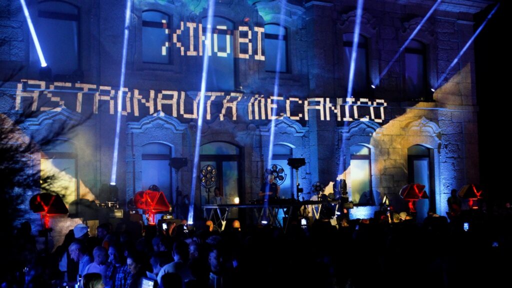 Uma apresentação meio analógica e meio digital, mapeando a fachada do Palácio do Picadeiro e manipulando imagens em tempo real.